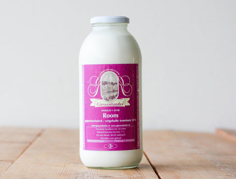 Deze gepasteuriseerde boerenroom komt vrij bij de productie van minder vette kazen op boerderij “Giessenlander”. Het vetgehalte kan per seizoen variëren en is in de zomer wat vetter en daardoor makkelijker te kloppen.