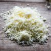 - De zoete aardappels zijn klaar wanneer u er makkelijk in kunt drukken met uw vingers. Haal ze uit de aluminiumfolie, snijd door en doe er een grote lepel crème fraîche bovenop, een beetje geraspte jonge kaas en wat zout en peper.
